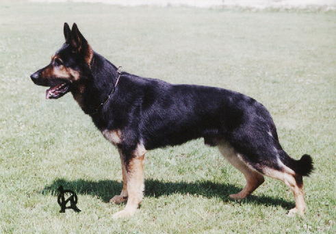 hlava výrazná, kohútik znatelný, chrbát este pevný, dlhý, kríze kratsie,