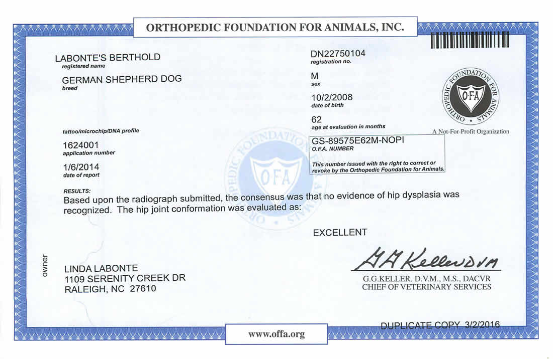 Labonte's Pharaoh - OFA Excellent